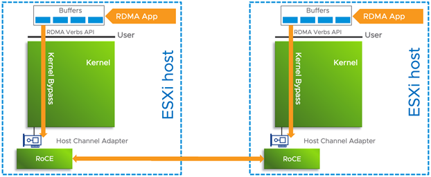 وقتی VM و ESXi Host دیگری برای PVRDMA تنظیم گردند، برنامههای کاربردی در VMهای دارای PVRDMA فعال میتوانند از RDMA استفاده کنند تا I/O را در مقابل میزان تأخیر پایین افزایش دهند.