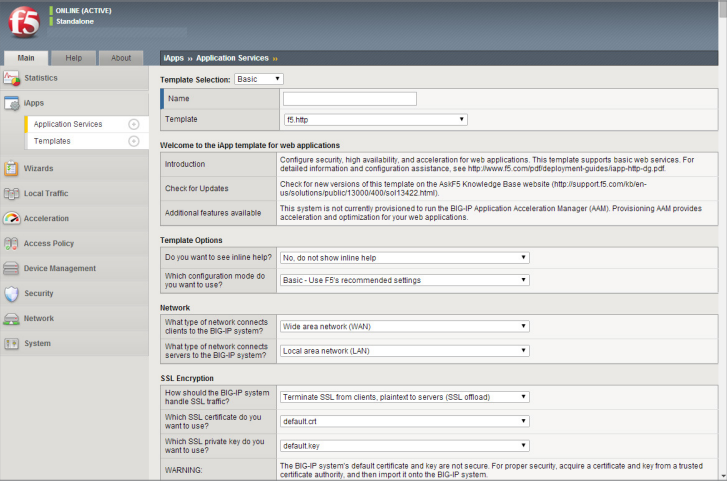 BIG-IP LTM شامل Templateهای F5 iApps میشود که یک ویژگی قدرتمند بوده و به کاربران امکان پیادهسازی، مدیریت و آنالیز کلی سرویسهای برنامههای سازمانی را به جای مدیریت جداگانه پیکربندی و Objectها میدهد. iApps میتواند قابلیت دید و کنترل بیشتری را برای ارائهی برنامه کاربردی ایجاد نموده و امکان پیادهسازی ظرف مدت چند ساعت را به جای هفتهها فراهم نماید. این رویکرد مبتنی بر برنامه کاربردی، شبکه را همسو با برنامههای کاربردی قرار داده و عرضه برنامههای کاربردی را منطبق با نیازهای کسبوکار امکانپذیر مینماید.