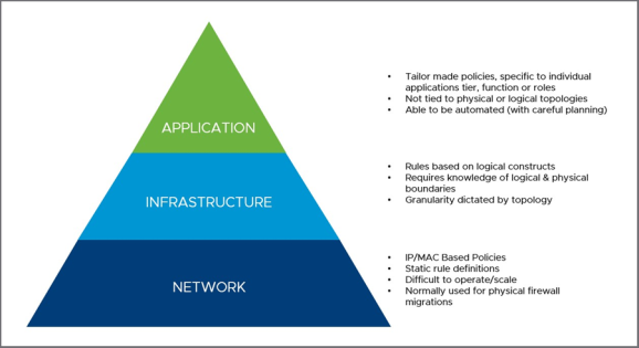 مهم است روشهایی که میتوان برای ساخت پالیسیهای NSX DFW مورداستفاده قرار داد، درک شوند. تمام پالیسیها برای وضعیت یا پیکربندی یکسانی از برنامههای کاربردی، زیرساخت یا شبکهی سازمان مورداستفاده قرار نمیگیرند. در بخش زیر هر یک از این روشها بررسی شده و کاربرد مناسب آنها موردتوجه قرار میگیرد.