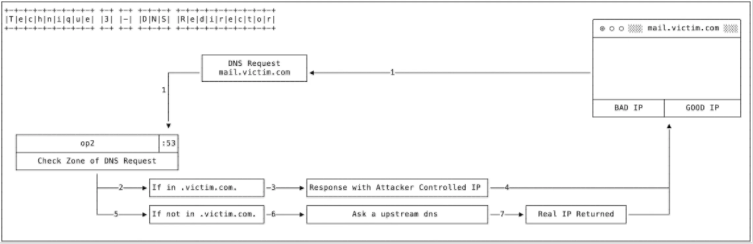 روش سوم شامل یک DNS Redirector است که به درخواستهای DNS پاسخ میدهد و با Recordهای A و NS که از قبل تغییر داده شده، ترافیک قریانی را به سمت سرورهایی که توسط مهاجمین کنترل میشوند هدایت میکند.