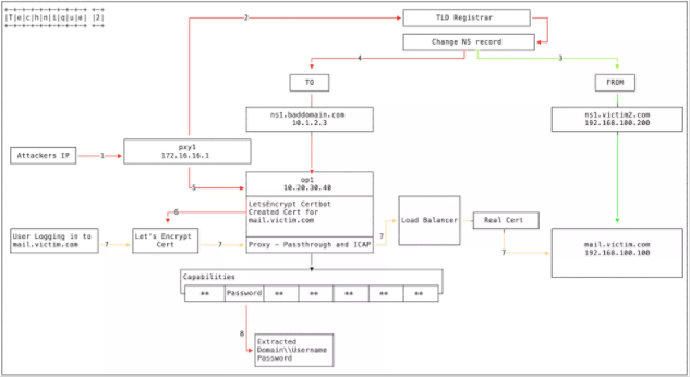 عاملان خطرآفرین برای دستکاری سوابق DNS از چندین شیوه استفاده نمودهاند. در شیوهی اول، مهاجمان وارد پنل مدیریتی ارائهدهندهی DNS شده و IP دیگری را روی یک آدرس A Record IP ثبت شده، قرار میدهند. سپس مهاجمان از Let’s Encrypt Certificate استفاده میکنند تا بدون هیچ خطای Certificateی اتصال ایمنی را برقرار کنند.