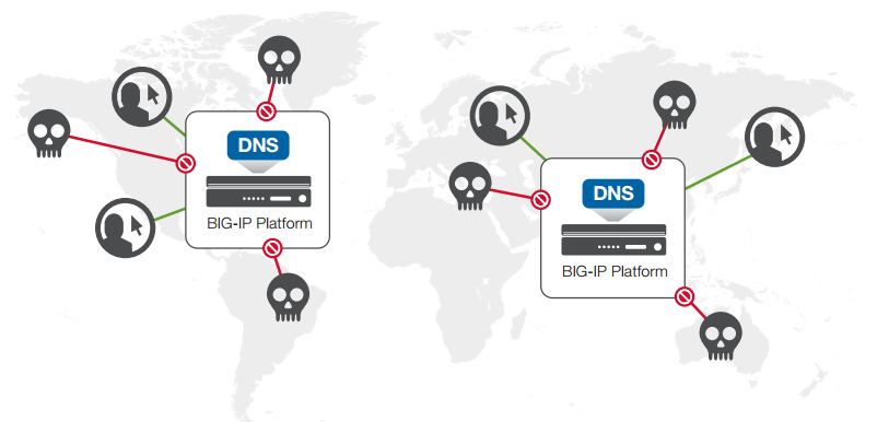 حجم Queryهای DNS اعم از موارد مجاز یا مرتبط با حملات DoS که به یک IP هدایت میشوند، از طریق Load Balancing در بین تجهیزات BIG-IP DNS در موقعیتهای جغرافیایی مختلف به سادگی مدیریت میشوند. لازم به ذکر است که مزایای زیر برای مدیران شبکه فراهم میگردد: