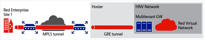 این سناریو روشی جهت اتصال با سرعت بالا، از Tenant روی شبکهی مبنا به شبکهی مجازیِ واقع در شبکهی شرکت ارائهدهندهی خدمات هاستینگ می باشد. یک Tenant از طریق (MPLS (Multi Protocol Label Switching به شبکهی شرکت هاستینگ وصل میشود و آنجا یک GRE Tunnel بین لبهی روترِ شرکت هاستینگ و Multi-Tenant Gateway به سمت شبکهی مجازی Tenant ایجاد میگردد.