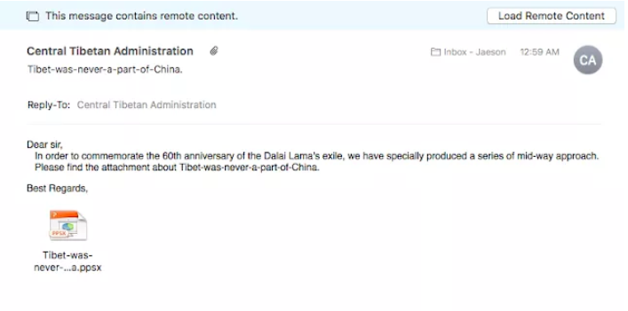 محققان یک گروه مخرب جدید که بدافزار قدرتمند ExileRAT را که از طریق اسناد پاورپوینت با استفاده از زیرساخت های سرور منسوخ C2 پخش می کند، شناسایی کردهاند. مهاجمان نرمافزارهای مخرب را از طریق پیوست ایمیل ارسال شده از سوی ایمیل نمایندگی اداره کل مرکزی ثبت (Central Tibetan Administration (CTA که یک سازمان دولتی ثبتی است، پخش میکنند.