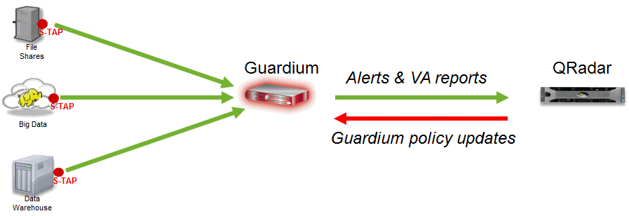با توجه به اینکه اکثر سازمانها امروزه راهکارهای امنیتی نظیر “راهکار مدیریت اطلاعات و رخداد امنیتی (SEIM)” و یا “کنترلهای دسترسی در سطح برنامه” را در برنامهی اجرایی خود دارند، با این حال، اکثر راهکارهای امنیتی موجود، از تحلیل عمیقی نسبت به آسیبپذیریهای زیرساخت پایگاه داده برخوردار نمیباشند. InfoSphere Guardium Vulnerability Assessment ، علاوه بر ایجاد یکپارچگی در راهکارهای امنیتی موجود مانند IBM Security QRadar یا ArcSight، تحلیل درست و عمیقی را نیز ارائه میدهد. همچنین InfoSphere Guardium Vulnerability Assessment از یک مدل یکپارچهسازی «Snap it» با سیستمهای موجود فناوری اطلاعات نظیر راهکارهای مدیریت داده، ارسال تیکت و آرشیوسازی نیز برخوردار می باشد. توجه نمایید، هدف از این امر تکمیل راهکارهای موجود فناوری اطلاعات و همچنین توسعهی وضعیت امنیتی است.