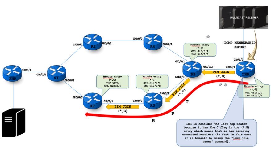 - روتر B پیام ملحق شدن PIM را دریافت میکند و یک ورودی Forwarding را برای گروه G روی LAN B اضافه مینماید.