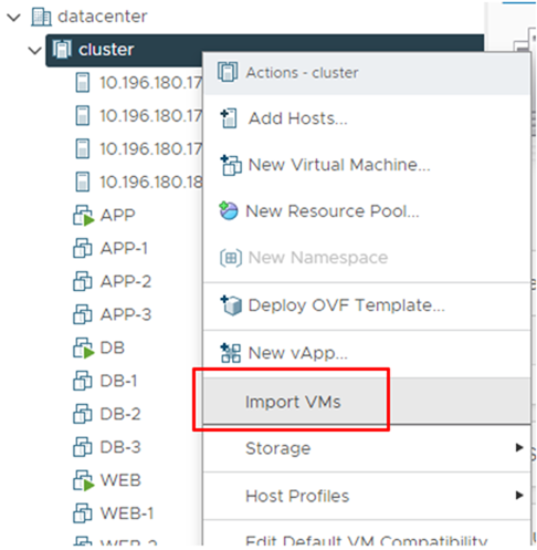 منو در سطح کلاستر یا Host قابلیت جدید Import VMs را ارائه میدهد، انتخاب این گزینه یک Wizard را جهت قرارگیری ما در فرآیند ورود باز میکند.