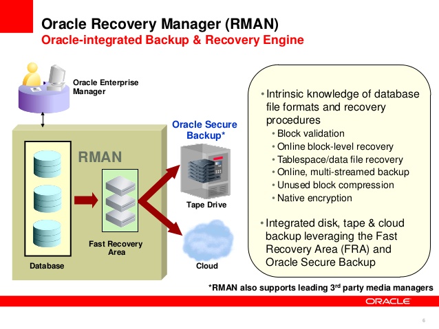 RMAN یکی از کاربردهای Oracle است که پشتیبانگیری، بازیابی و Recover کردن فایلهای دیتابیس را تسهیل میکند. RMAN نیز مانند Oracle Data Guard یکی از ویژگیهای دیتابیس Oracle است و نیازی به نصب جداگانه ندارد. Oracle Data Guard به خوبی با RMAN یکپارچهسازی شده است و به کاربر توانایی استفاده از موارد زیر را میدهد: