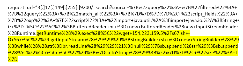 در حملهی که مورد بررسی قرار گرفت، URL به گونهای طراحی شده بود که ازآسیبپذیری CVE-2015- 1427 سوءاستفاده نماید. این Exploit آسیبپذیری قدیمی و بهروزرسانی شده، موتور کد نویسی Groovy از Elasticsearch است. نسخههای 1.3.0 تا 1.3.7 و 1.4.0 تا 1.4.2 شامل این آسیبپذیری میشوند.