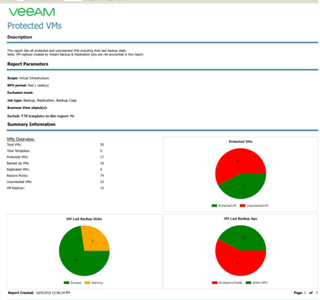 اما ویژگی بسیار خوب دیگر این است که میتوانیم به راحتی از این صفحه به دو گزارش دسترسی پیدا کنید. با کلیک بر روی لینک View Protected VMs Report، باید احراز هویت شوید، سپس Create را انتخاب کرده و چیزی شبیه به تصویر زیر خواهید دید.