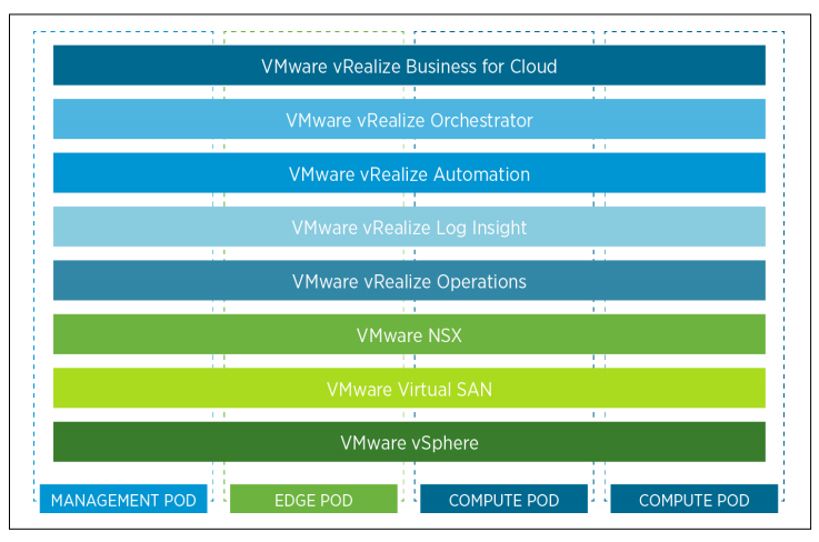 VMware Validated Designs برای SDDC شامل VMware vSphere، VMware Virtual SAN، VMware NSX، vRealize Operations، vRealize Log Insight، vRealize Automation، vRealize Orchestrator و vRealize Business میشود.