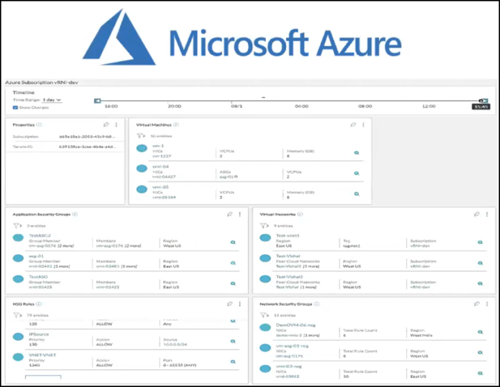 - داشبوردهایی برای اشتراک در سرویسهای VNet، NSG، ASG، VM، Subnet و … و نمایش آنها در vRNI