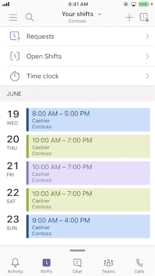 ویژگی جدید ساعت زمان در ماژول Teams Shifts به کارمندان اجازه میدهد تا ساعت ورود و خروج و استراحت خود را با برنامه Teams موبایل خود تنظیم کنند. مدیران برای اطمینان از ساعت ورود و خروج اعضای تیم به محل کار تعیین شده میتوانند یک محدودهی جغرافیایی ایجاد کنند.