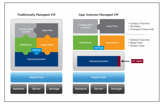App Volumes با ایجاد دسترسی به دسکتاپهای مجازی و برنامههای کاربردی انتشار یافته از قبیل برنامههای کاربردی RDS-Hosted و Citrix XenApp، از کاربران نهایی پشتیبانی مینماید. بنابراین مدیریت برنامههای کاربردی از یک فرآیند کند و طاقتفرسا به یک مکانیسم چابک با قابلیت مقیاسپذیری بالا تبدیل میشود که علاوه بر عرضه و مدیریت سریعتر برنامههای کاربردی، موجب کاهش هزینههای IT تا %70میگردد.